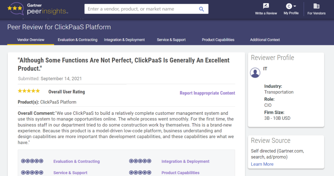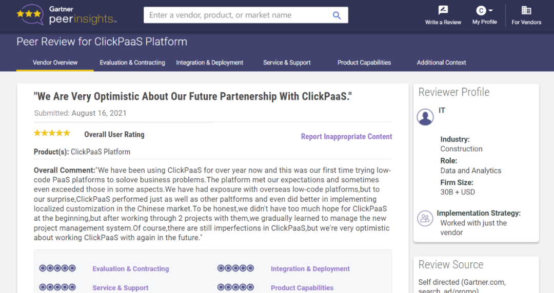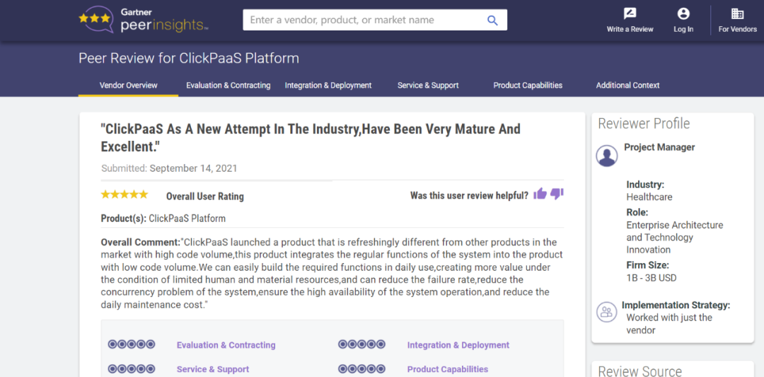 Tips:::【Peer Insights】——用户对企业IT产品和服务发布真实评价的平台。。目前已有355个市场,,,255,000条经过验证的评价。。。。每一条评价Gartner会针对参评企业营收规模及参评人员信息做验证、、、评价内容做多维核实。。。